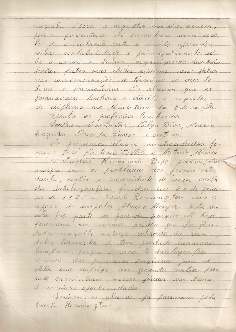 BIOGRAFIA DE PRÓPRIO PUNHO DA PROFESSORA CLÉRIA CAROLINA TICON, AMIGA E CONTEMPORÂNEA DE MEU AVÔ.