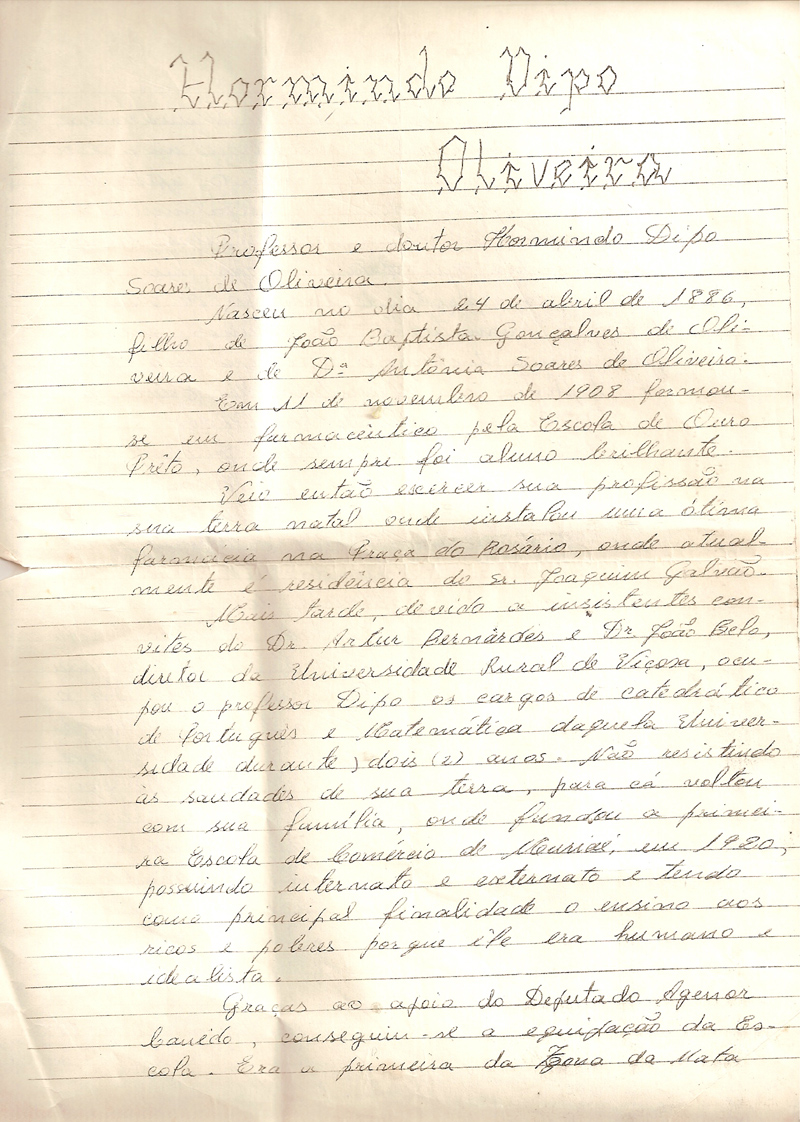 CASA DO MEU AVÔ, HORMINDO DIPO, UM EDUCADOR ACIMA DE TUDO - FOI UM DOS PRIMEIROS PROFESSORES DO TRADICIONAL COLÉGIO SÃO PAULO, NAQUELE TEMPO SOB A DIREÇÃO DO DR. MÁRIO URURAY MACEDO, TAMBÉM LECIONOU NA UNIVERSIDADE DE VIÇOSA, CATEDRÁTICO EM PORTUGUÊS E MATEMÁTICA (MATEMÁTICA EU NÃO SABIA, FIQUEI SABENDO PELOS ESCRITOS DA D. CLÉRIA... )