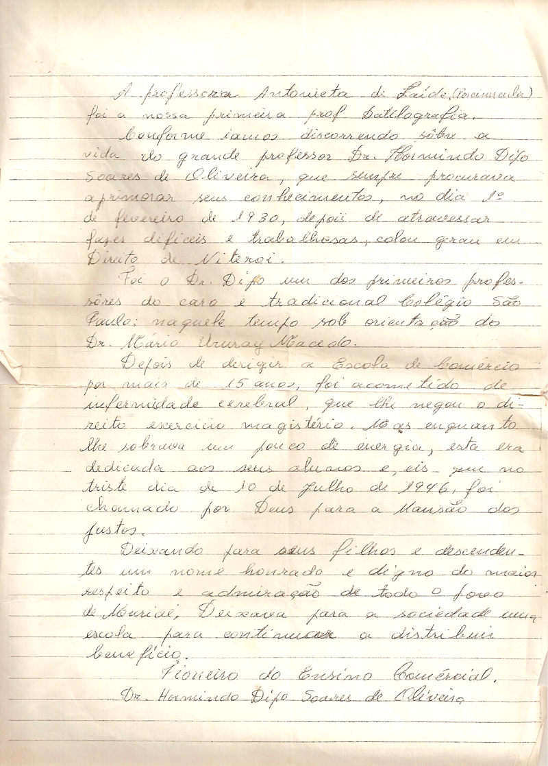 BIOGRAFIA DE PRÓPRIO PUNHO DA PROFESSORA CLÉRIA CAROLINA TICON, AMIGA E CONTEMPORÂNEA DE MEU AVÔ.